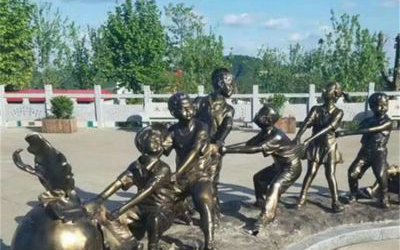 玻璃鋼小孩拔蘿卜雕塑將兒童的微笑和純真的神情生動地勾勒在雕塑上,能感受到孩子們快樂的笑聲。小孩手上拿著一根鮮紅的蘿卜,正在用盡全力往外拔,他的動作顯得幼稚可愛,讓人不得不替他加油。