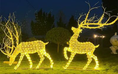 不銹鋼鹿雕塑是本身不會動的,而五顏六色的燈光忽閃忽閃的就像是動起來一樣。它孕育了大自然的精神,帶給觀者一種心靈的震撼。當人們駐足觀察的時候,似乎能感受到那股來自森林深處的清新氣息。
